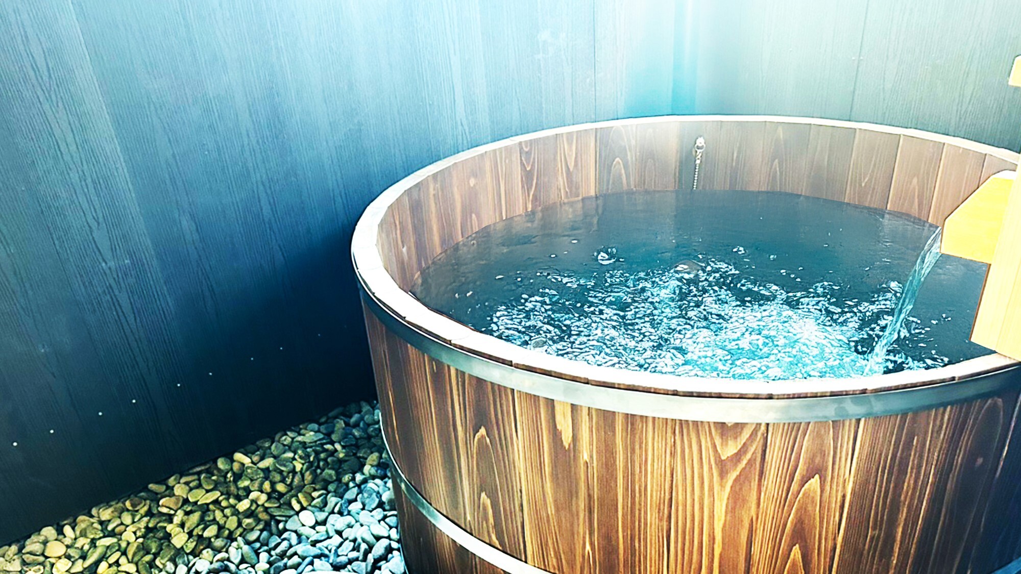 1階はシンプルなシャワールーム、2階は露天風呂付きのバスルーム、3階は洋風シャワールームをご用意。