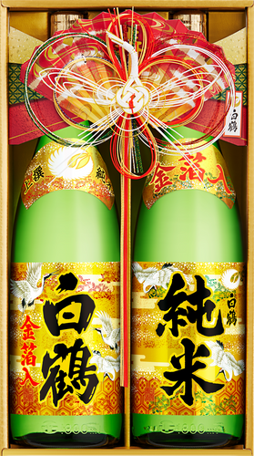 ◇白鶴 迎春 純米酒 金箔入 2本セット(JP-40)【1.8L 2本】