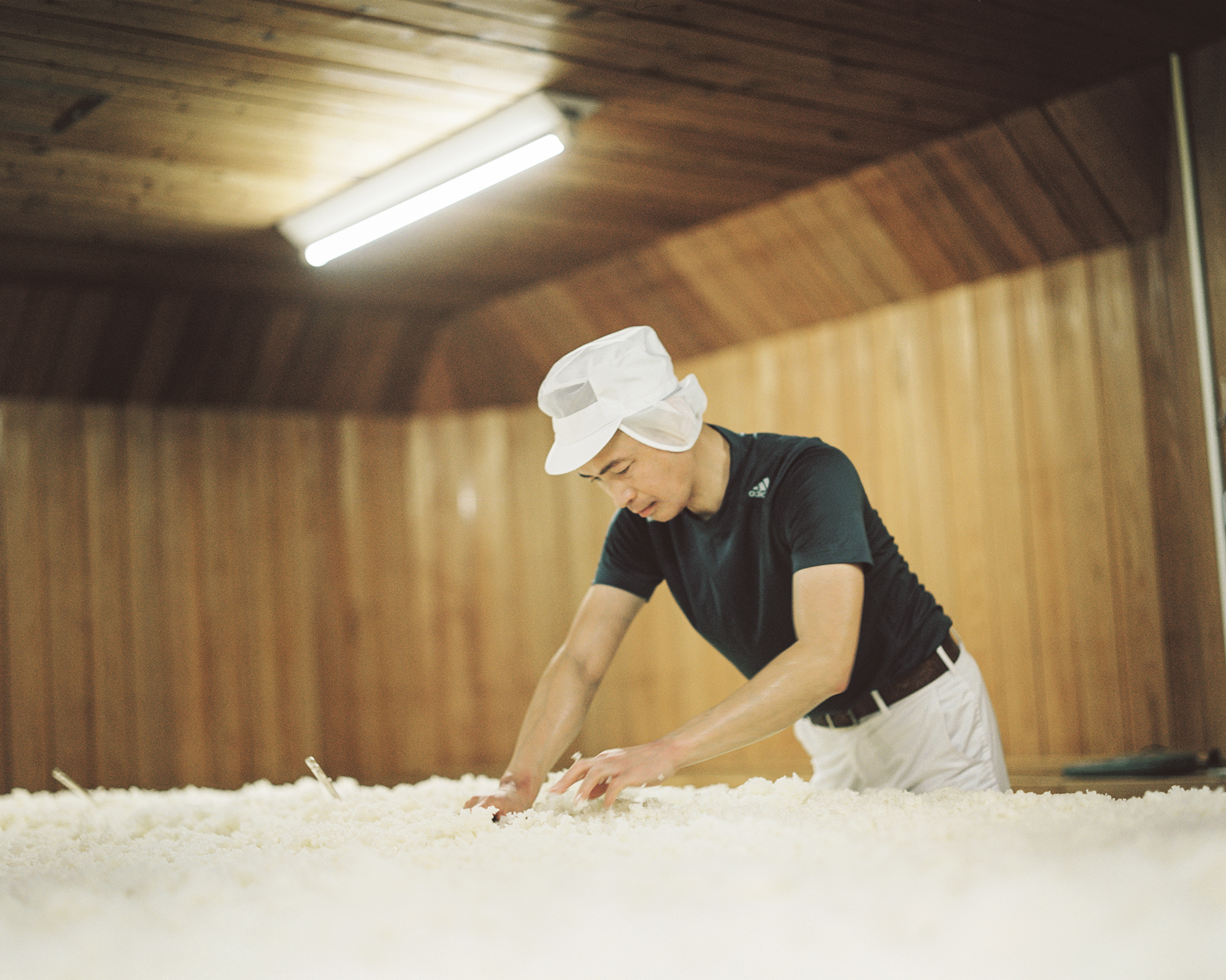 ご提供する日本酒「甲子」は、きのえねomoyaと同じ敷地内の蔵で、私たち蔵人の手により醸されています。ご来店いただく時期によっては、仕込みに奔走する蔵人とすれ違うかもしれません。その土地の湧き水でできた日本酒を、醸された酒蔵で味わっていただけます。