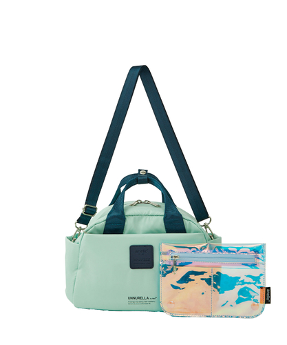 柔らかな雰囲気のカラーリングのレディースライクな3型は、ブランドアイコンの口金リュックにはレインコート生地の傘袋が付属。ミニショルダーバッグとミニボストンバッグにはWpc.でも展開しているオーロラのような風合いの生地を使ったポーチが付属。
