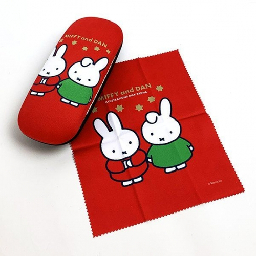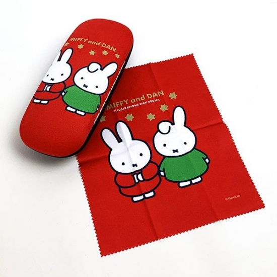 ミッフィーと折れた耳がチャームポイントのダーンのメガネケース。ミッフィーの絵本のようなカラーリングも素敵♡メガネクロスもお揃いのデザインです。