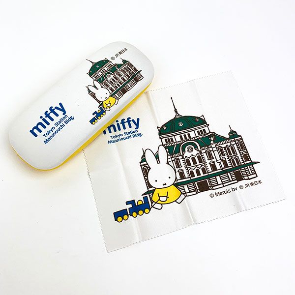 JR東日本とのコラボレーション!東京駅舎×ミッフィーのメガネケースは、積み木の電車を引くミッフィーがとってもラブリー♡もちろんケースとお揃いのクロス付きです。