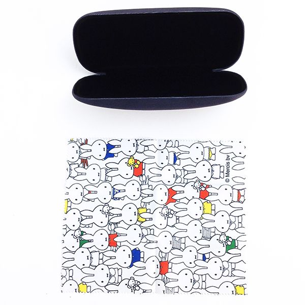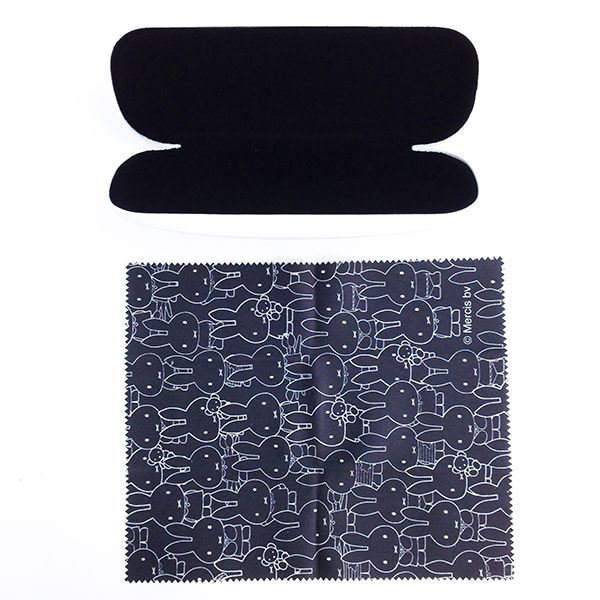 クロスは総柄のミッフィーちゃん♡キュートなメガネケースもメガネクロスのモノトーンでおしゃれな印象になっています。