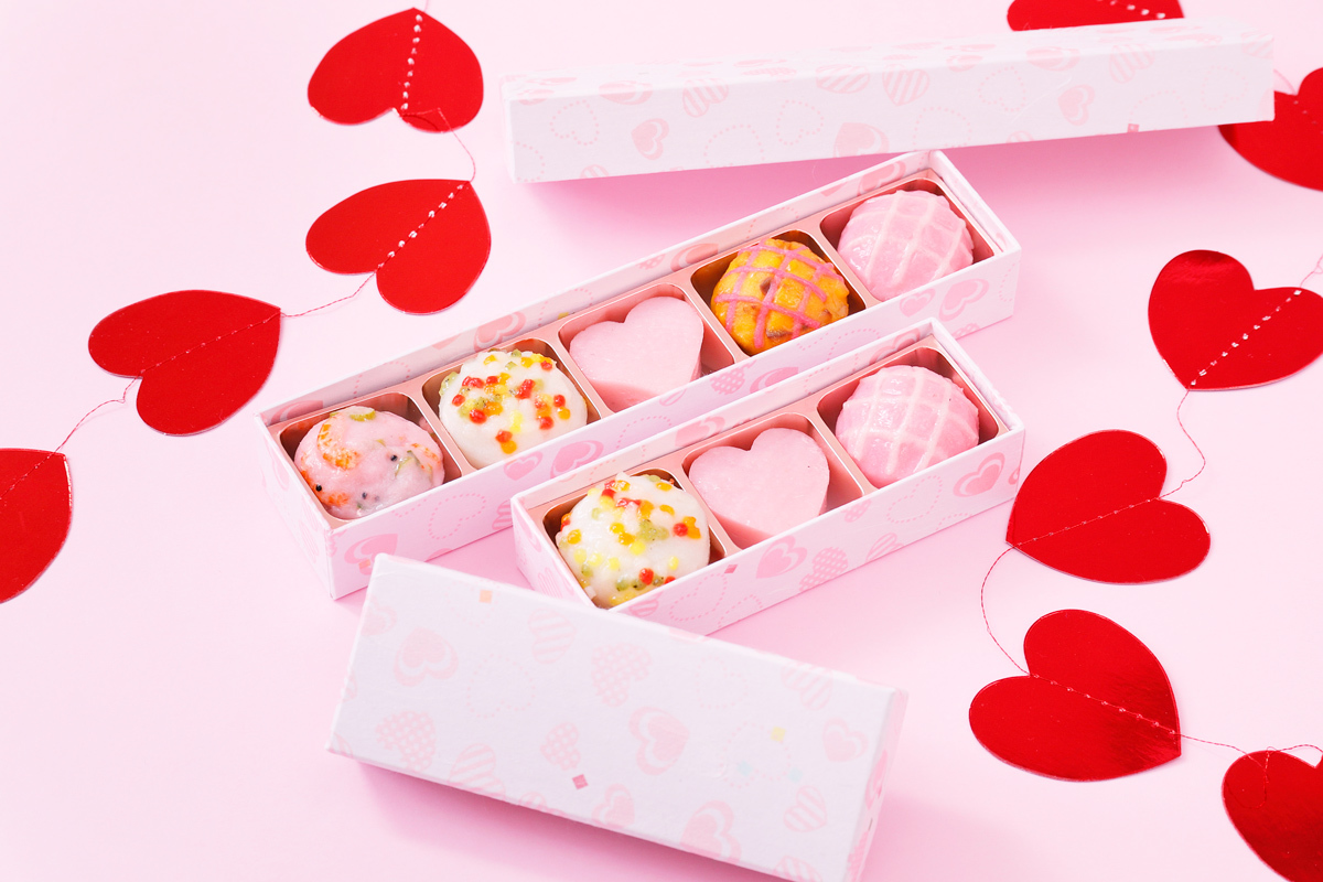 ちょっとしたプレゼントに気軽に使いやすいよう3個入りと5個入りの2種類をご用意。ハートをデザインしたかわいらしい小箱にパッケージしています。