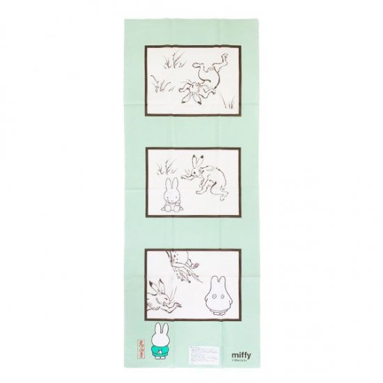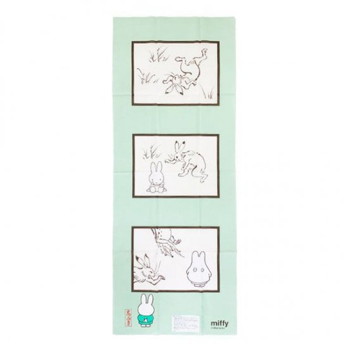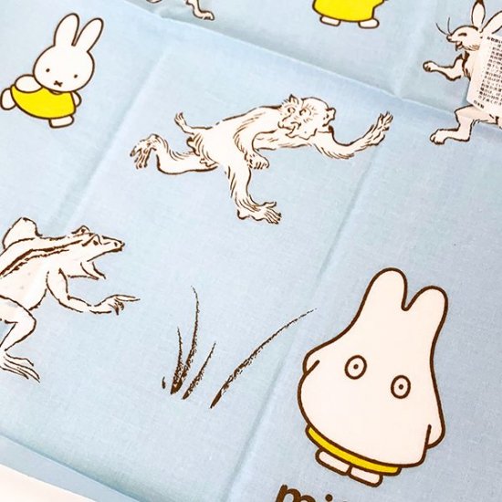 和の動物たちとミッフィーが遊びまわっていて、手拭いから飛び出してきそう♪