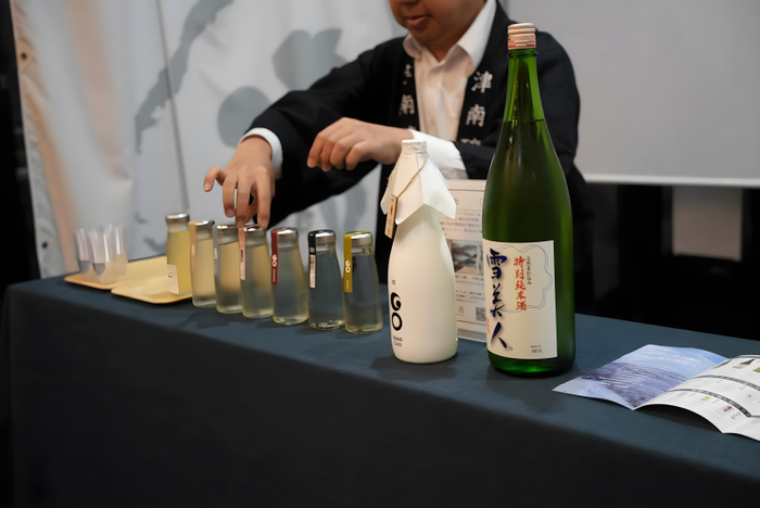 試飲会では、津南醸造が生産する「郷(GO) GRANDCLASS 魚沼コシヒカリEdition」や「グリーン日本酒(ユーグレナ培養酵母エキス使用)」を含む各種銘柄を、皆さんに愉しんでもらいました。