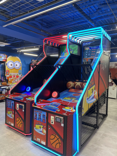 ▼B.LEAGUE公式球を体験できるバスケゲーム(店内筐体には、選手のサイン入り)