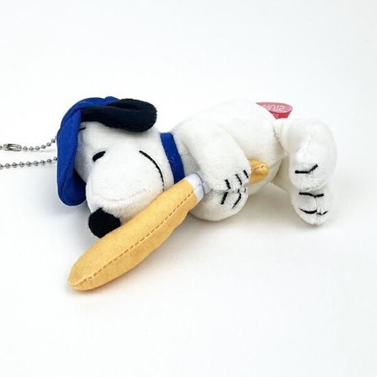 嬉しそうにバッドを握っています。バッターボックスにいるのでしょか。いつものスヌーピーとは違う姿が新鮮。青いヘルメットが映えます。