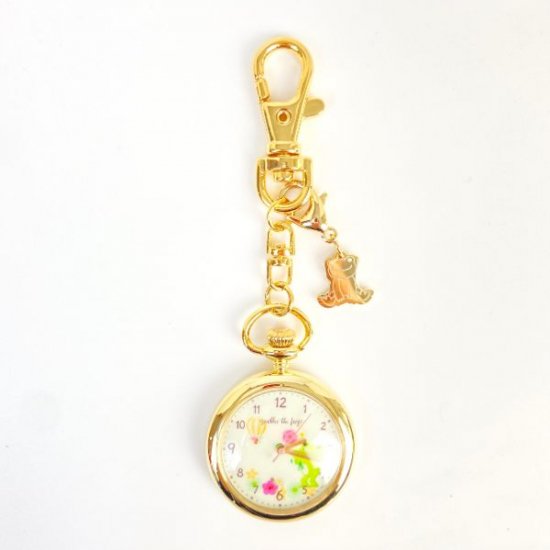 最初にご紹介するのは、チャーム付きキーチェーンウォッチ。キーホルダータイプの金具と、懐中時計のようなデザインがオシャレです。