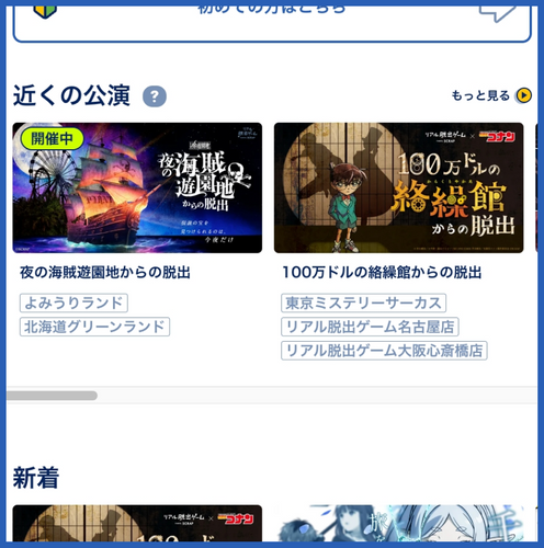 告知解禁されたばかりの「新着」や、「初めての方におすすめ」、お子様と参加したいイベントを探している方にぴったりの「リアル脱出ゲーム for kids」など、ジャンルごとに公演をご紹介。行きたい公演がきちんと決まっていなくても、こういうジャンルで遊んでみたい、という何となくのイメージがあれば、あなたにぴったりのイベントを探すことができます。