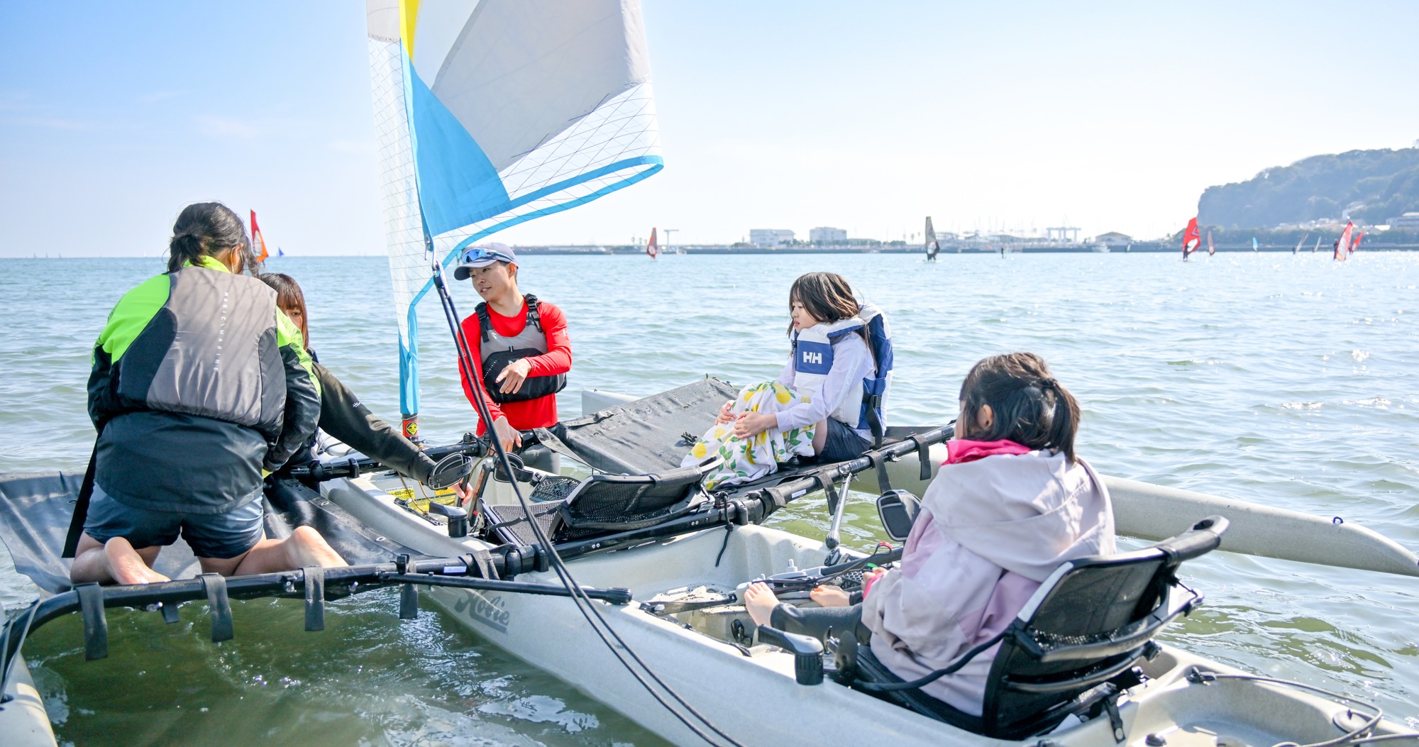 1. 圧倒的な手軽さ:ヨットの特別な装備は不要。プールに行く水着、タオル、ビーチサンダル(裸足でも可)で参加可能です。