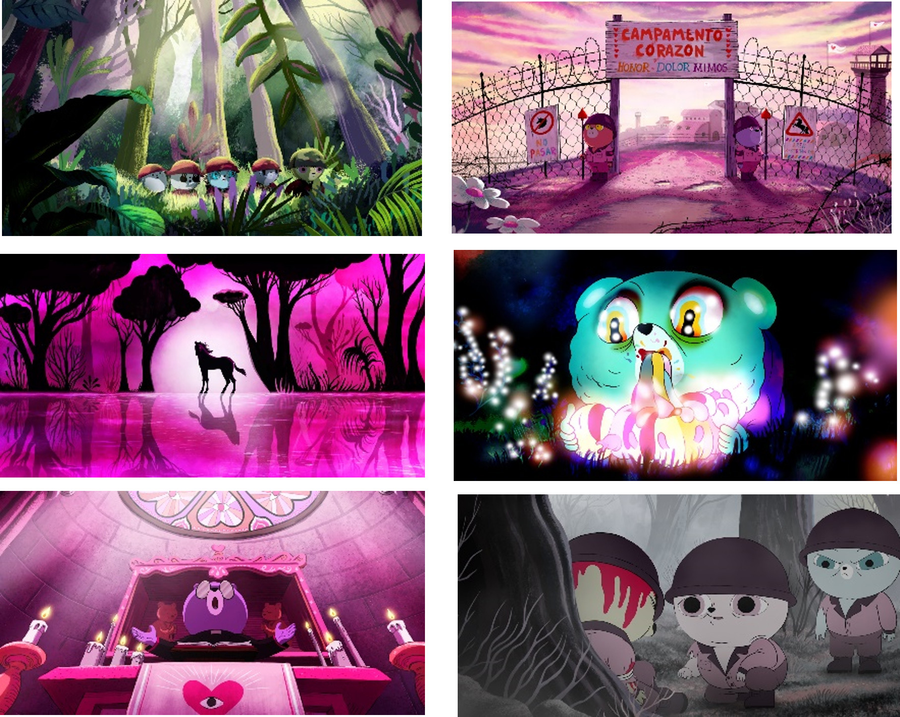 アルベルト・バスケス監督が生み出す、不気味さと可愛さを兼ね備えた作風が溢れ出ている本作は、『地獄の黙示録』×『バンビ』×『聖書』という企画コンセプトに、テディベアとユニコーンの最後の聖戦を、血しぶき、内臓、ドラッグ、BL、テディベアの下半身など“アブナイ表現”をたっぷり混ぜ込んで作り上げた、“究極の反戦アニメーション”。企画・制作期間に6年を要し250人以上の精鋭スタッフが、50体ものキャラクターと1,500もの背景によって作り上げた。2Dと3Dアニメーションが融合し、音楽を巧みに駆使して、シチュエーションやキャラクターとシンクロしながら、一貫性を保つ芸術的な作品に仕上がりました。『ユニコーン・ウォーズ』のキャラクターの可愛い見た目からは、一見子供向けアニメーションと思われがちですが、家族関係、宗教、環境、悪の起源、そして権力を支配する意味を語りながら、“分断がもたらす争い”がいかに無意味であるかを説く大人のためのダーク・ファンタジー作品です。