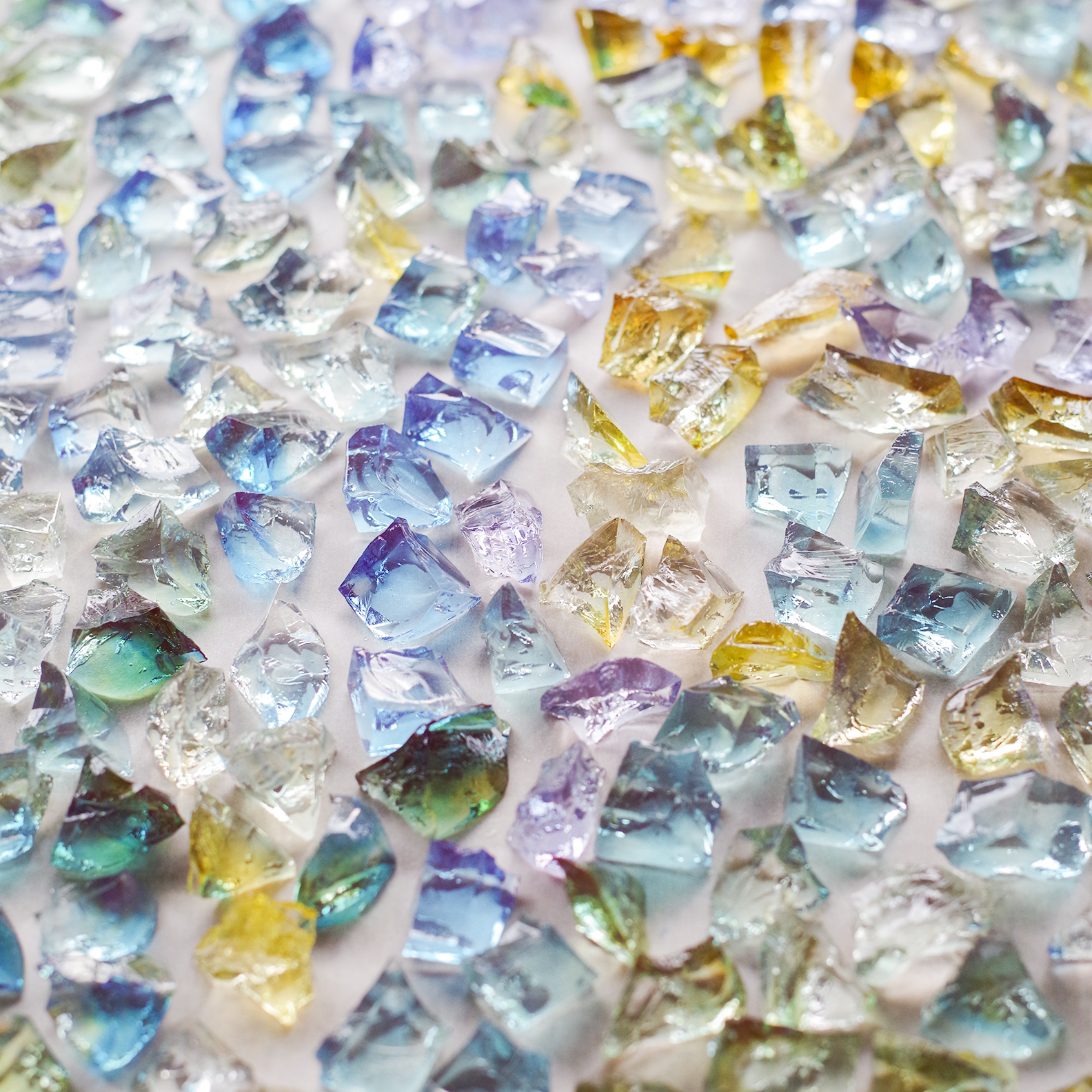断面がランダムになることで、宝石や鉱物に近い美しい見た目と、シャリっとした程よい食感に仕上げるためのこだわりです。