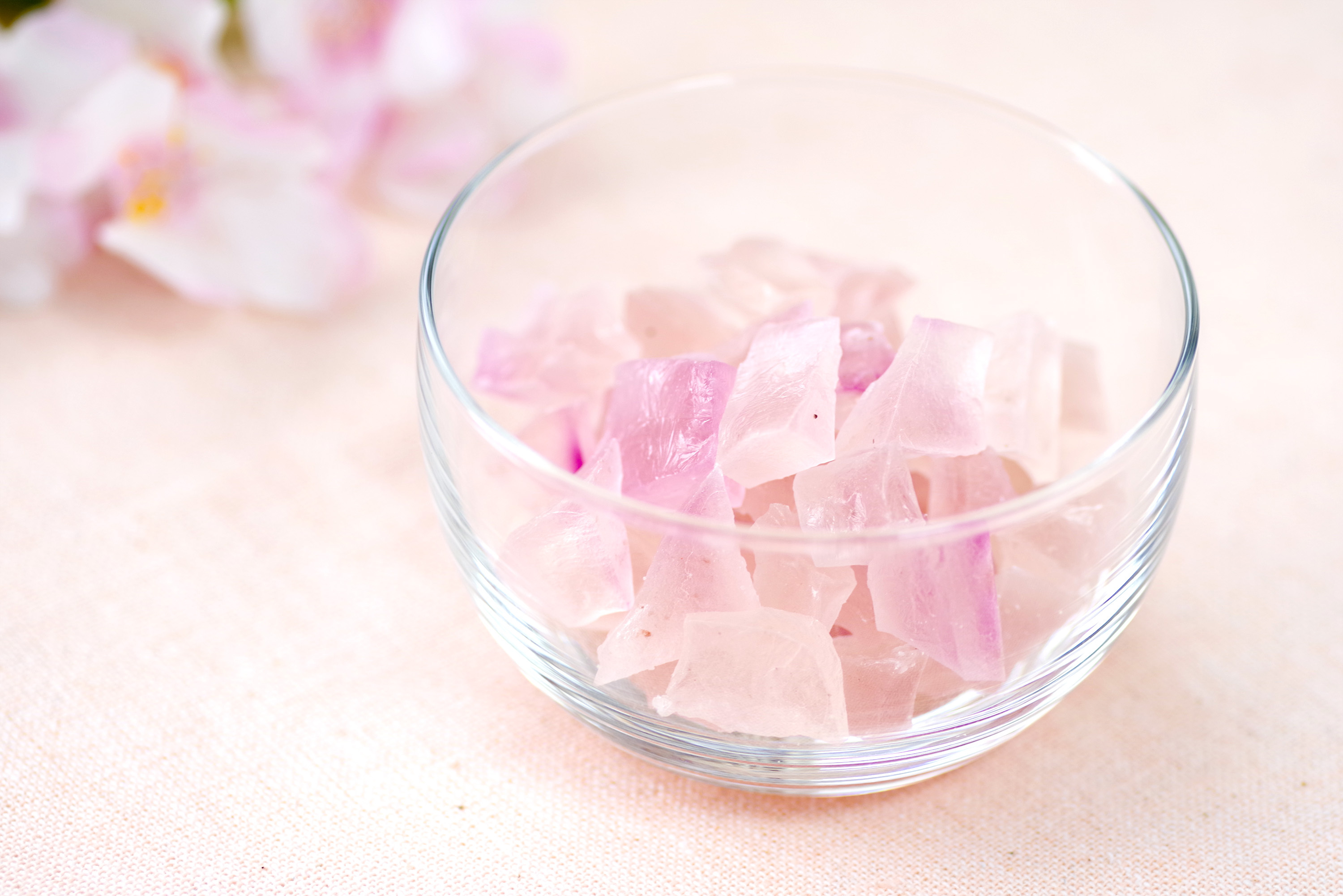 ・淡いピンク色の琥珀糖がとても美しくて、食べるとカリッぷるんと病みつきになる食感です!ほんのり香る桜の風味と優しい甘さでホッとします