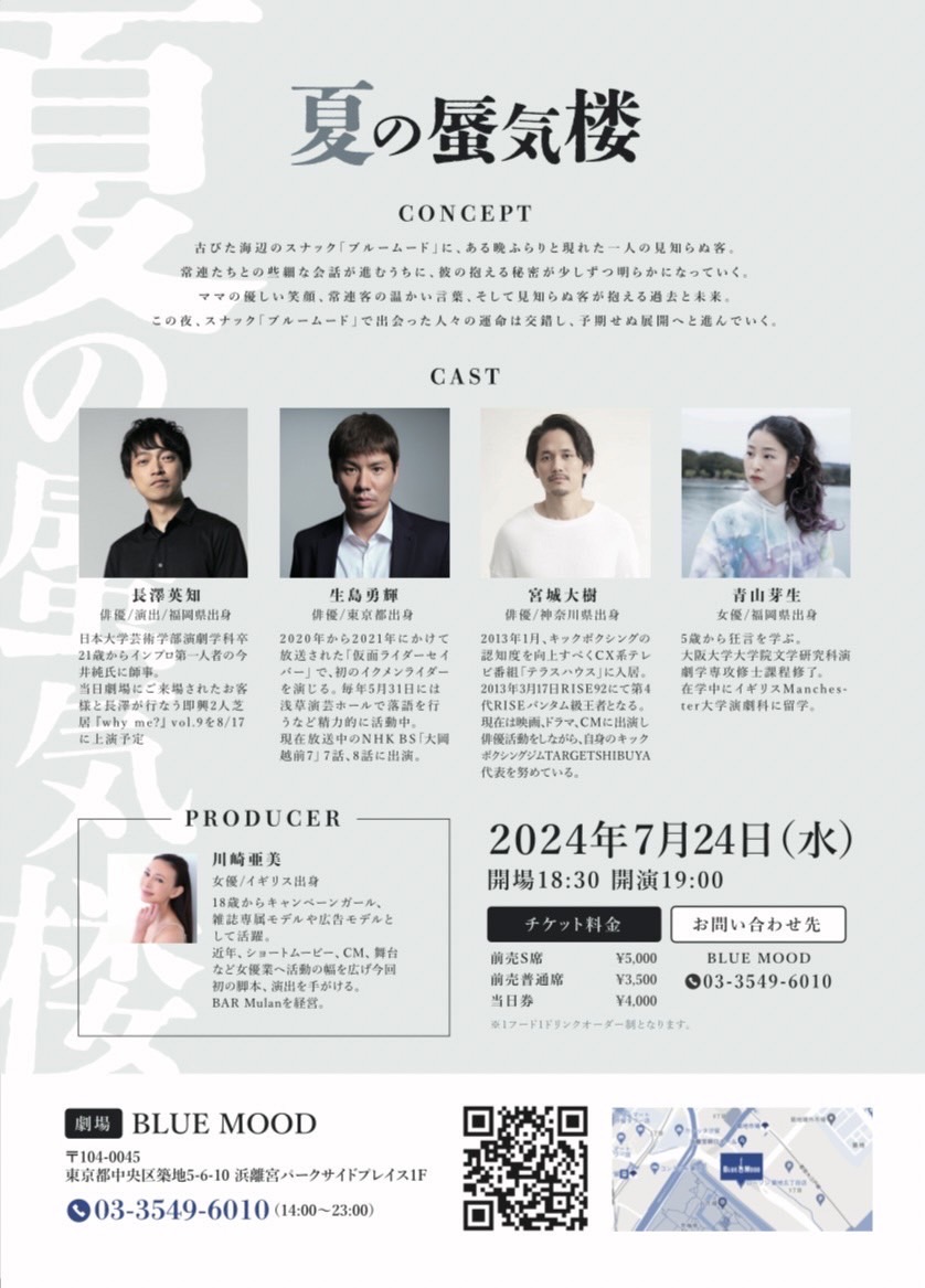 株式会社アデッソ所属の女優。川崎亜美が、2024年7月24日BLUEMOODにて、初の脚本&演出&出演 舞台「夏の蜃気楼」を公演。