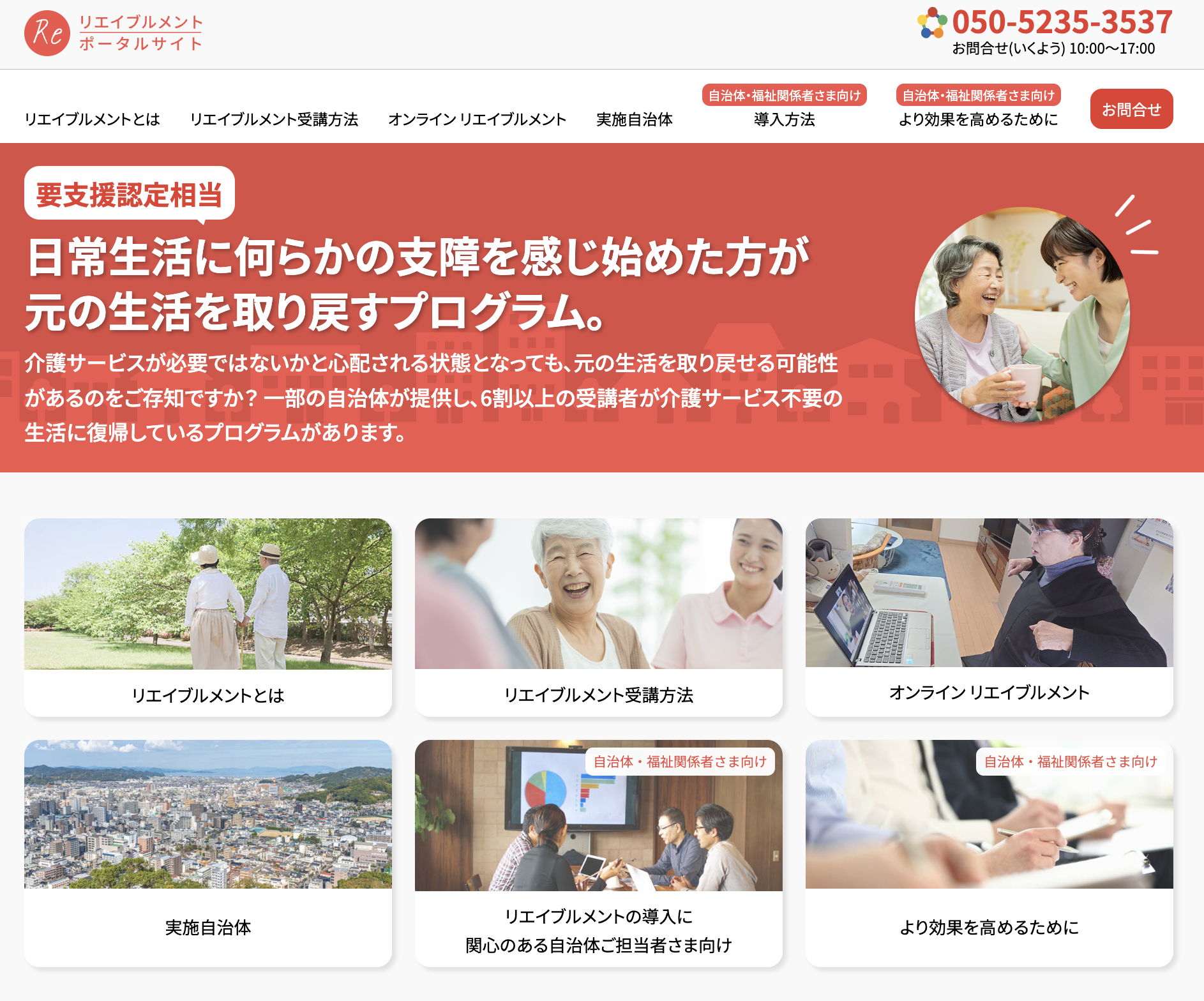 また、リエイブルメントプログラムへのご理解を深めていただくため、同日よりポータルサイト( https://www.reablement.jp )をオープンいたします。本サイトでは、リエイブルメントの理念や具体的な支援内容、利用者さまの声などを紹介するほか、自治体職員さま向けの研修情報や関連資料なども発信してまいります。