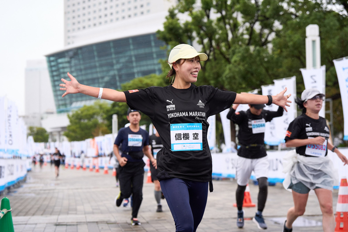 応援ゲストもランナーとして参加。横浜出身の長距離ランナー信櫻空さん、俳優の谷原さんが「私はフルの経験がないので、少しですけどフルマラソンの方と一緒に走れたのが貴重な経験になりました」「地元で一番好きなのがみなとみらいの大観覧車や赤レンガで、その前の道路を走ると、その景色を独り占めしている感覚になれて、走っていて楽しかったです」とコメント。