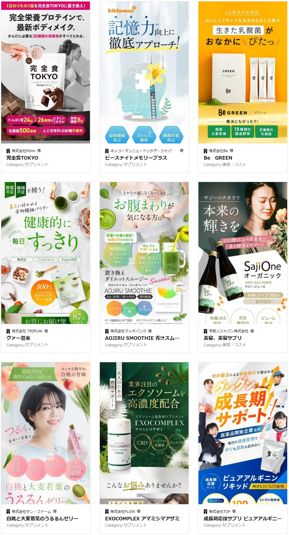 また、無形商材やBtoB商材など幅広いカテゴリに対応してきた経験を活かし、サプリメントのように情報量が多く説明要素が重要なLPでも、適切な情報整理と視覚的な表現技術により、ユーザーの理解を支えるページ構成の制作が可能です。さらに、公開可能な実績として累計65件に達したサプリメントLPの制作経験は、多様な訴求パターンやデザインアプローチを提供できる体制が整っていることを示しています。