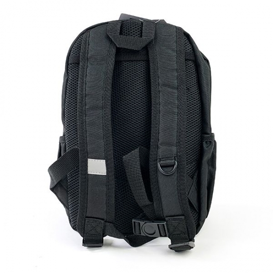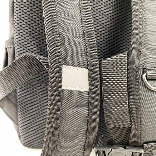 大きさはこのくらい。厚みはこのくらいです。ちょっとした遠足向けという感じでしょうか。サイドにもポケットがついていて、機能は十分です。目立つから、見つけやすいかも、、
