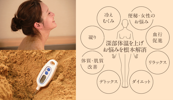 近年の健康志向の高まりや、女性特有の健康課題を解決するフェムテック市場の拡大、温活・腸活ブーム等、コロナ禍を期に、自らでできる健康法への意識の高まりが注目を集めています。酵素風呂「kinohi」は、女性の健康課題の解消のポイントである「冷え」に着目いたしました。身体を芯から温め、深部体温の上昇を目指すことにより、女性特有の健康課題である、冷え、肩こり、むくみ、基礎代謝、自律神経の乱れ、便秘、免疫力の低下、生理痛をはじめとしたPMS症状や、肌あれ、ニキビ跡、肌のハリツヤ等の美容のお悩みに向き合います。芯からデトックスする酵素浴を通じて、健康と美容の新習慣を提供いたします。