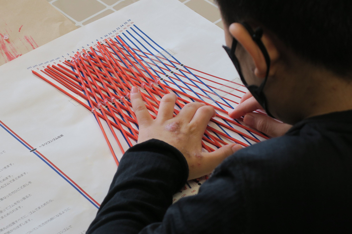 配布されたミニ神戸ポートタワーの材料(竹ひご、シリコンチューブ、バルーンライト)を使って、ミニチュアの神戸ポートタワーを設計・制作します。デザインのポイントや作り方も丁寧に説明し、スタッフが親子での制作をしっかりサポートします。