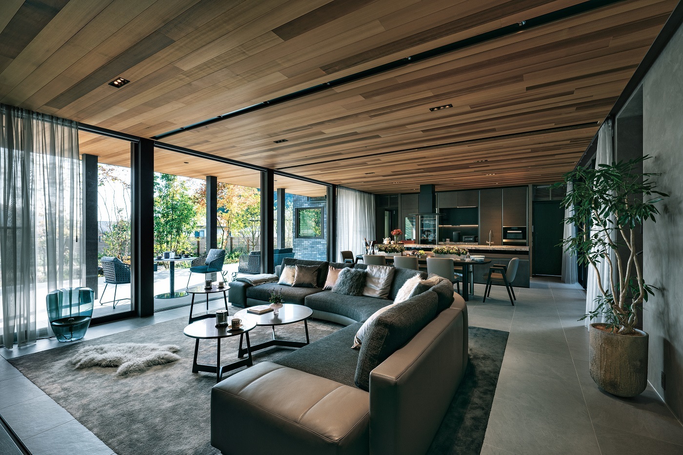 見どころは、大空間でラグジュアリーなリビング。