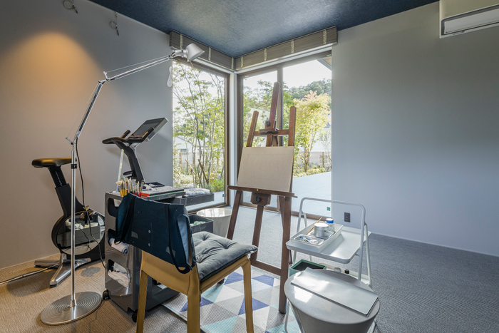 夫の趣味である絵をゆっくり描くことができるアトリエをつくりたい、との思いから別荘の検討を始めたところ、家族の一員である2匹の大型犬と一緒に快適に過ごせる場所にしたい、友人を招いてのホームパーティをしたい、といったI様夫妻の夢が広がり、それらを設計にまとめていきました。