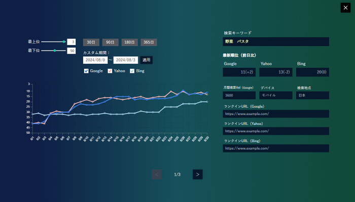 ・順位の変動幅を把握しやすくするためにグラフ縦幅のレンジを変更することが可能です。