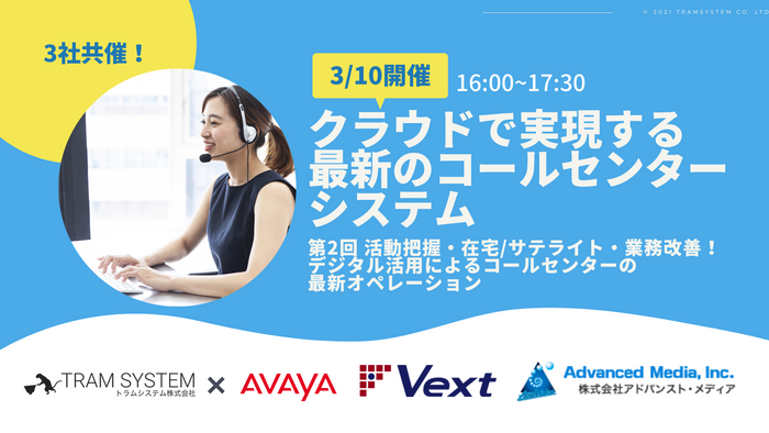 トラムシステムでは「在宅・サテライトの業務をAvaya事例で紹介! ~クラウドコンタクトセンターシステムの業務管理方法~」をテーマにAvayaと共にデモを交えながら2部構成で解説いたします。