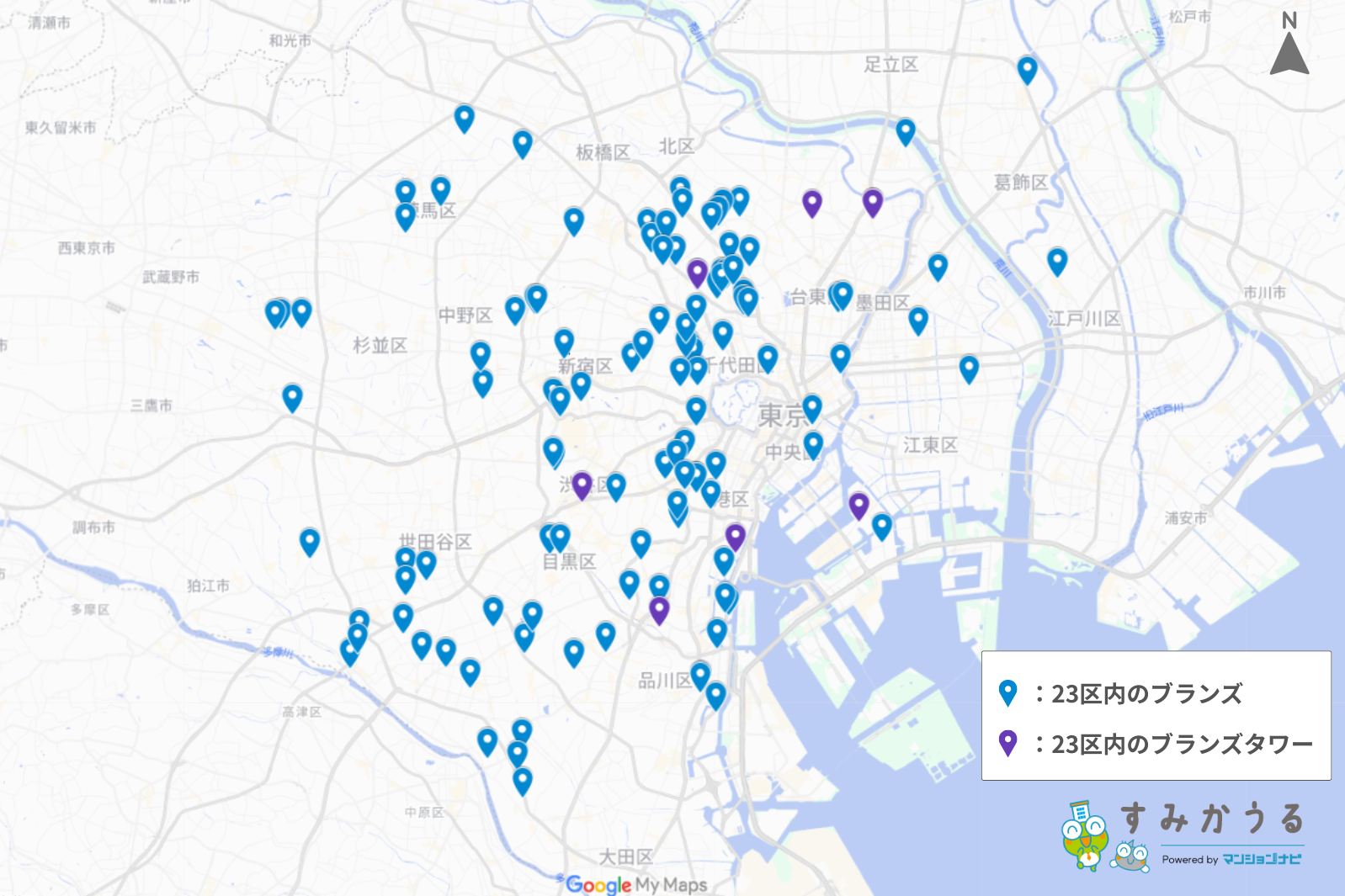 東京都23区におけるブランズシリーズの供給エリア