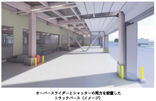 ※荷物輸送トラックが地上階に設置されたトラックバースに接車し、垂直搬送機等の利用により2階以上のフロアに荷物等を搬送する物流施設のこと。