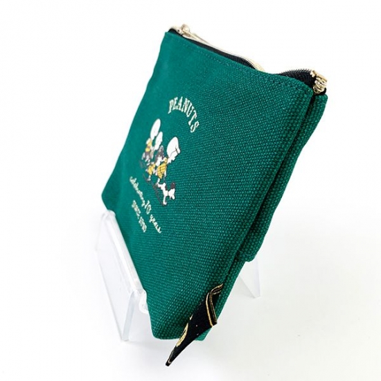 こちらは、シックなグリーンのデザインです。中央にレトロなタッチのスヌーピーたちが描かれています。