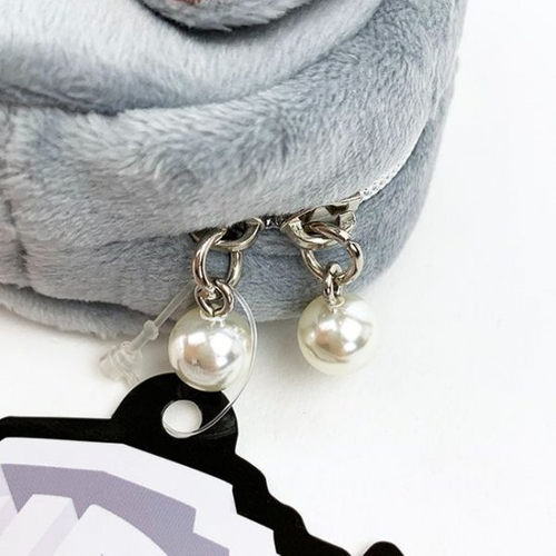 ファスナーを開けると、内側は巾着仕様になっています。アクセサリー入れにピッタリなポーチで、ブルーのリボンも可愛いですよね♡ファスナーのチャームが既に、パールのアクセサリーのようです。