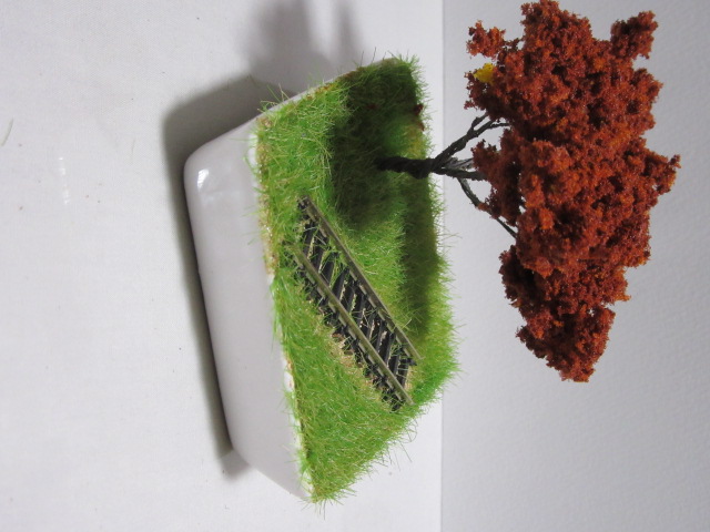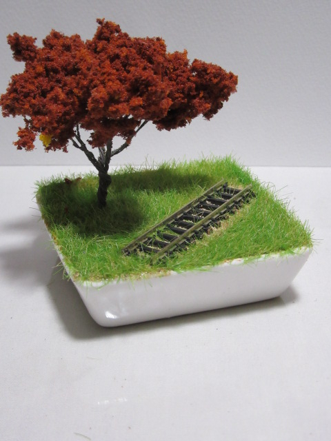 小さな器に線路と樹木が付いた盆ラマ(盆栽風ジオラマ)が作れるワークショップも同時開催。