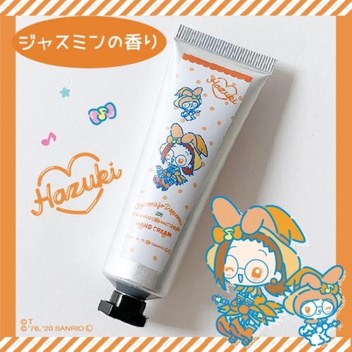 保湿バッチリなハンドクリームまであります♪こちらは、はずきとマイメロがコラボ。マイメロと言えばピンクですが、はずきカラーに合わせてオレンジなのがレアですよね。ジャスミンの香りつきなので癒されますよ。