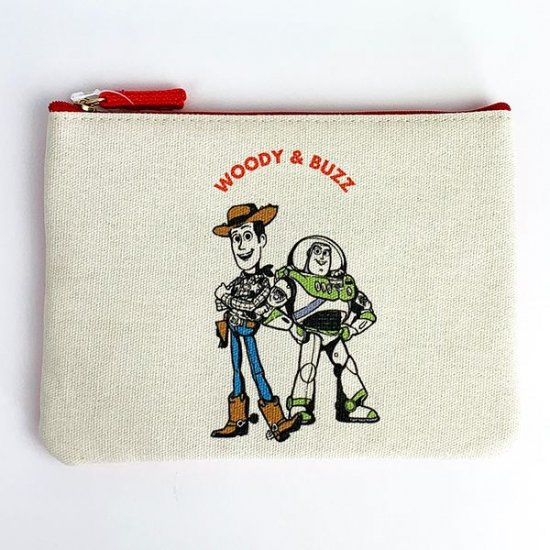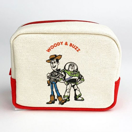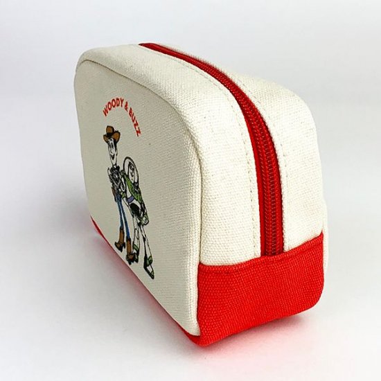 スクエア型のポーチが、ウッディ&バズの最強コンビのイラストで登場です。キャンバス地のナチュラル感に加えて、サイドと底部分の赤い配色が効いたデザイン♪ウッディーとバズの決めポーズもカッコいいですよね。