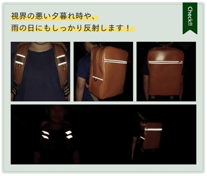 全ての方向に反射材が付いており、視界の悪い夕暮れ時や雨の日にもしっかり反射します。