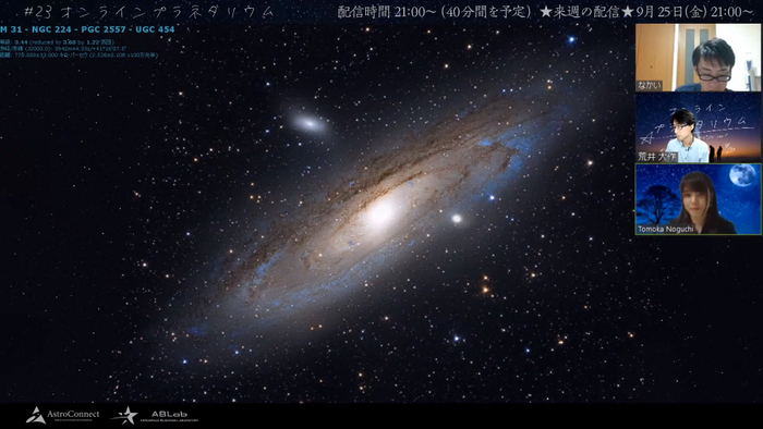 株式会社アストロコネクト(本社:神奈川県川崎市多摩区 代表取締役:荒井大作、以下、アストロコネクト)は、一般社団法人ABLab(所在地:東京都中央区 代表理事:伊藤真之、以下、ABLab)とのコラボレーション企画として、今年1年の「宇宙・天文ニュース」を振返りながら、ご視聴者と一緒にRANKINGを行うオンラインプラネタリウム特別番組を12月25日よる9時からYouTube Liveにて無料配信いたします。