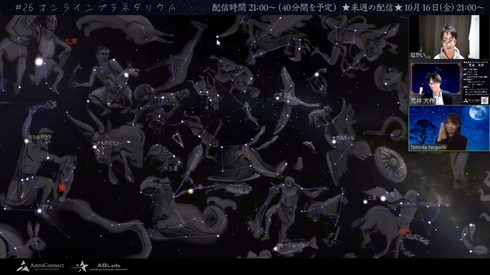 パーソナリティーがご視聴者からのコメントを番組内で取り上げることで、従来とは違った「双方向コミュニケーション型プラネタリウム」をライブ配信にてお届け致します。この機会に是非ご視聴ください。