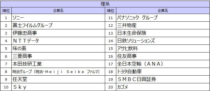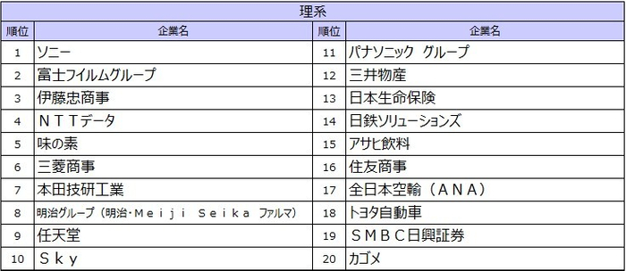 首位を獲得したのは6年連続で伊藤忠商事。文理・男女すべてで上位に入り、安定性と挑戦環境のバランスが高く評価された。