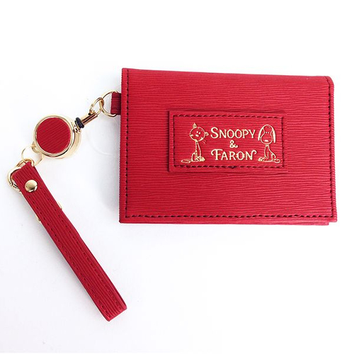 シリーズで揃えても可愛い、三つ折り財布と二つ折りパスケースです。それぞれ赤と黒の2色から選べます。他にも長財布やポーチもありますよ♪