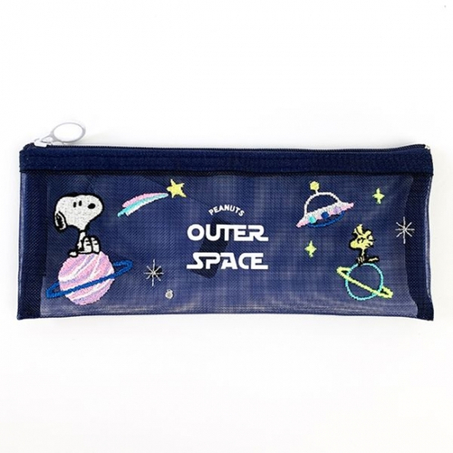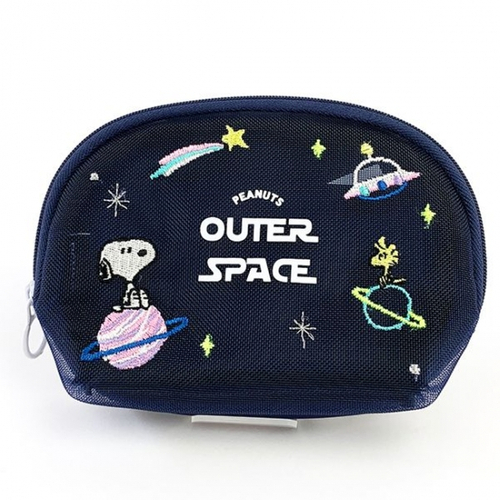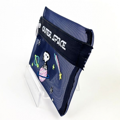 メッシュ素材がこれからの時期にもピッタリなポーチは、用途もいろいろ♪宇宙をモチーフとしていて、淡いカラーの刺繍がとってもかわいいんです。