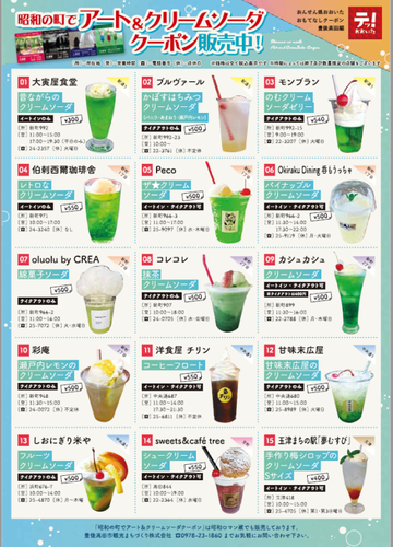 市内のデジタルアート(共通3館券)と昭和の町商店街の15店舗で提供する❝クリームソーダ❞を楽しめるクーポン券を販売しています。