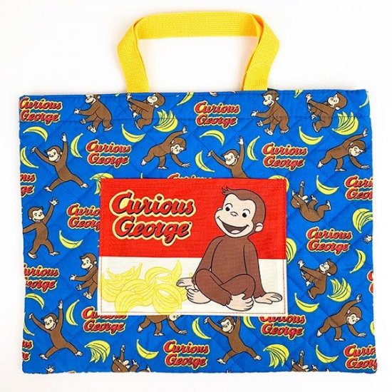 おさるのジョージの通園通学グッズが新入荷しました。体操服入れや上履き入れなど、キルティング素材の手作り風アイテムが勢ぞろいです。