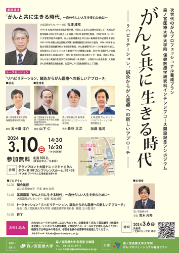 【森ノ宮医療大学】3月10日(日)に本学初のがんをテーマとしたシンポジウムを開催!「がんと共に生きる時代」~大阪国際がんセンター松浦総長基調講演~【告知】