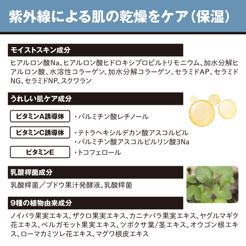 紫外線による乾燥からお肌を守る25種類の保湿成分配合
