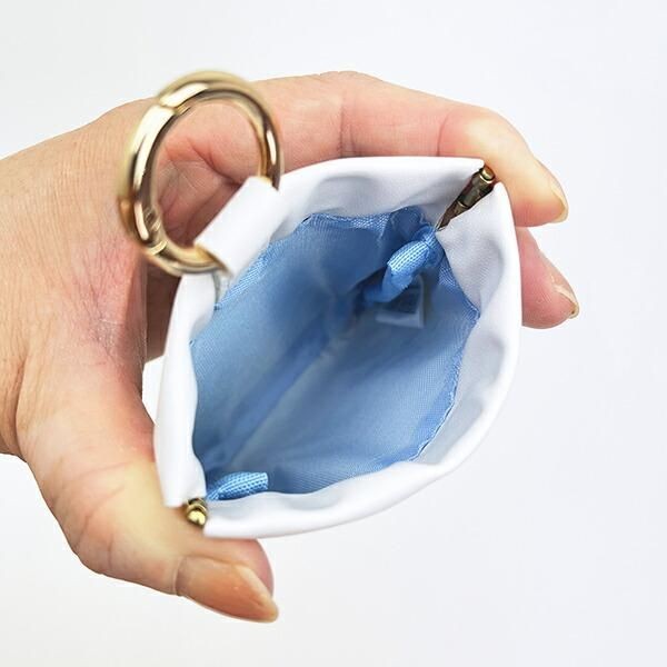 まずはこちら、カナビラ付きバネケースです。ホワイト×ゴールドが上品可愛い印象。