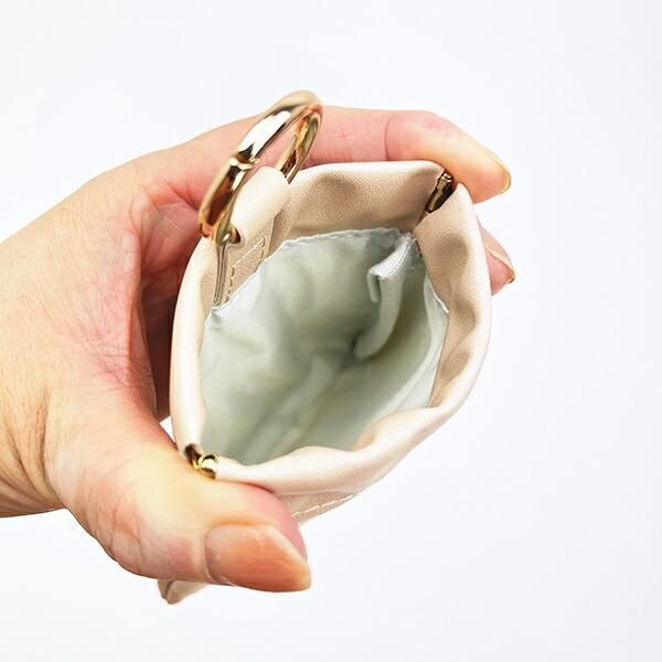 バッグの中にしまっておくのも良いですが、せっかくのカナビラ付きですので断然おススメはバッグに付けて頂くことです!イヤホンやリップなど、使いたいアイテムを収納してバッグに付ければ、バッグをガサガサせずにサッと取り出せるのでぜひ使ってみて欲しいです。