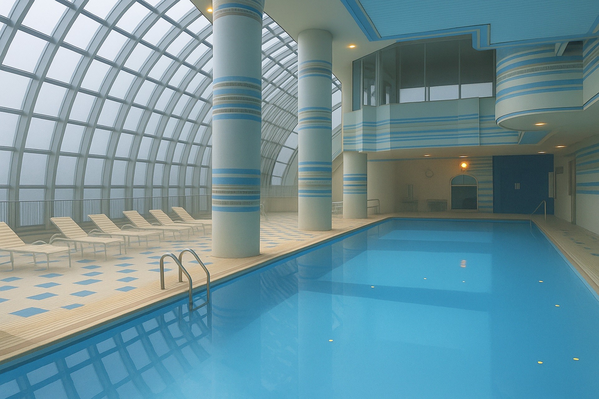 館内施設:大浴場、貸切温泉、ラウンジ、レストラン、プール(夏季限定)