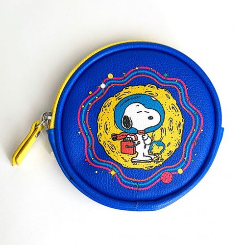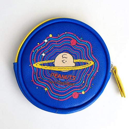 ラウンドフォルムのポーチも登場です。こちらはブルーを基調としていて、ピンクやイエローなどのラインがアートな雰囲気です。色合いもレトロモダンなテイストで、スヌーピーもチャーリーブラウンもキュートですね。